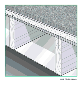 Radiant barriers are installed in buildings to reduce summer heat gain and winter heat loss. In new buildings, you can select foil-faced wood products for your roof sheathing (installed with the foil facing down into the attic) or other locations to provide the radiant barrier as an integral part of the structure. For existing buildings, the radiant barrier is typically fastened across the bottom of joists, as shown in this drawing. All radiant barriers must have a low emittance (0.1 or less) and high reflectance (0.9 or more).